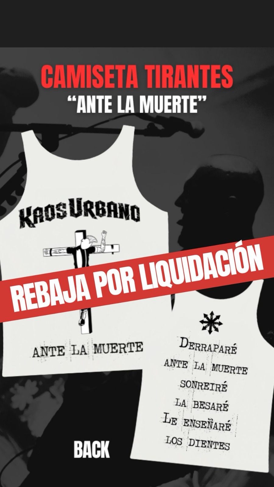 Camiseta de tirantes blanca con estribillo de la canción “Ante la muerte” a la espalda